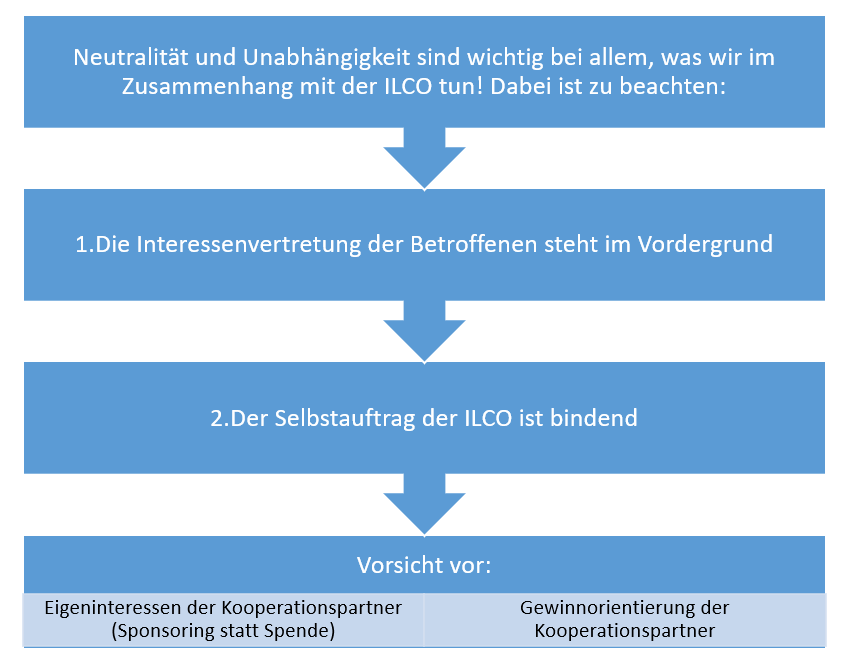 Gewinnorientierte Unternehmen versuchen oft auch indirekt Einfluss zu nehmen. Spenden oder andere Unterstützung von ILCO-Gruppen oder Einzelpersonen kann der Imagepflege dienen. Beispiel: Ein positiver Eindruck von einem Stomaartikel-Hersteller kann dazu führen, dass man diesen öfter empfiehlt ohne dass man das selber wahrnimmt.